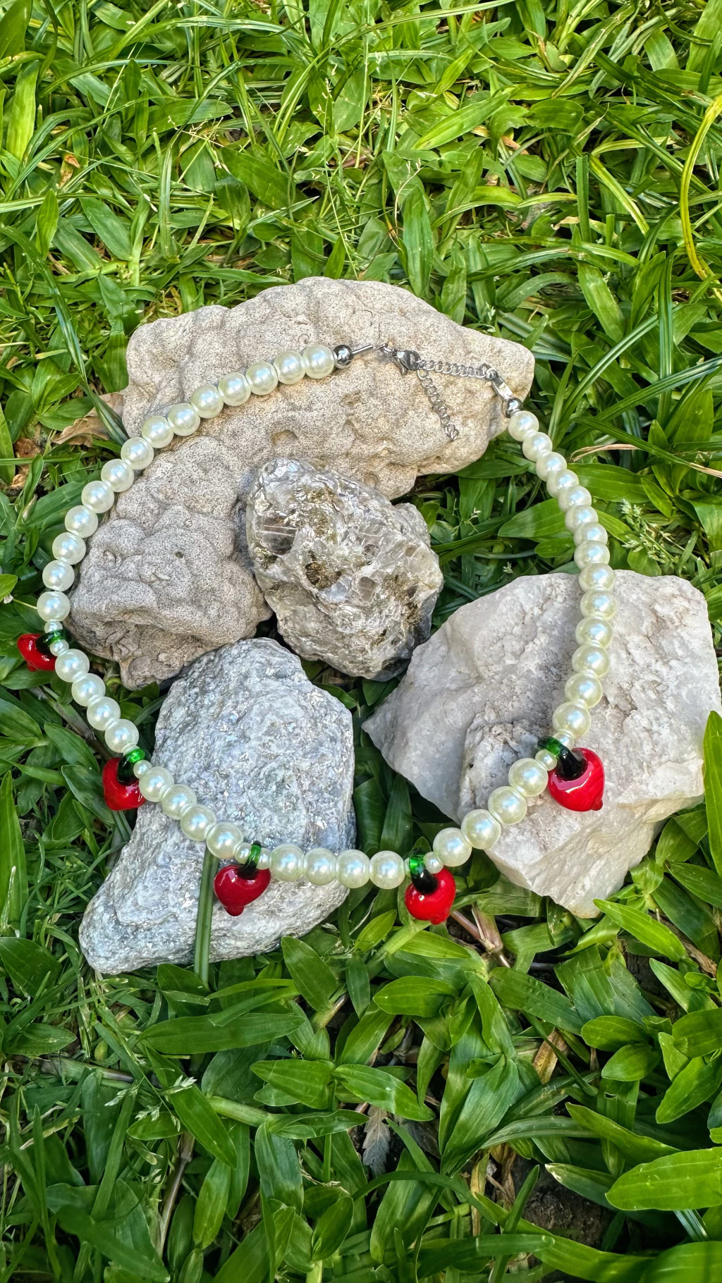 Collar con perlas de vidrio, dijes de vidrio murano y terminaciones de acero quirurgico.