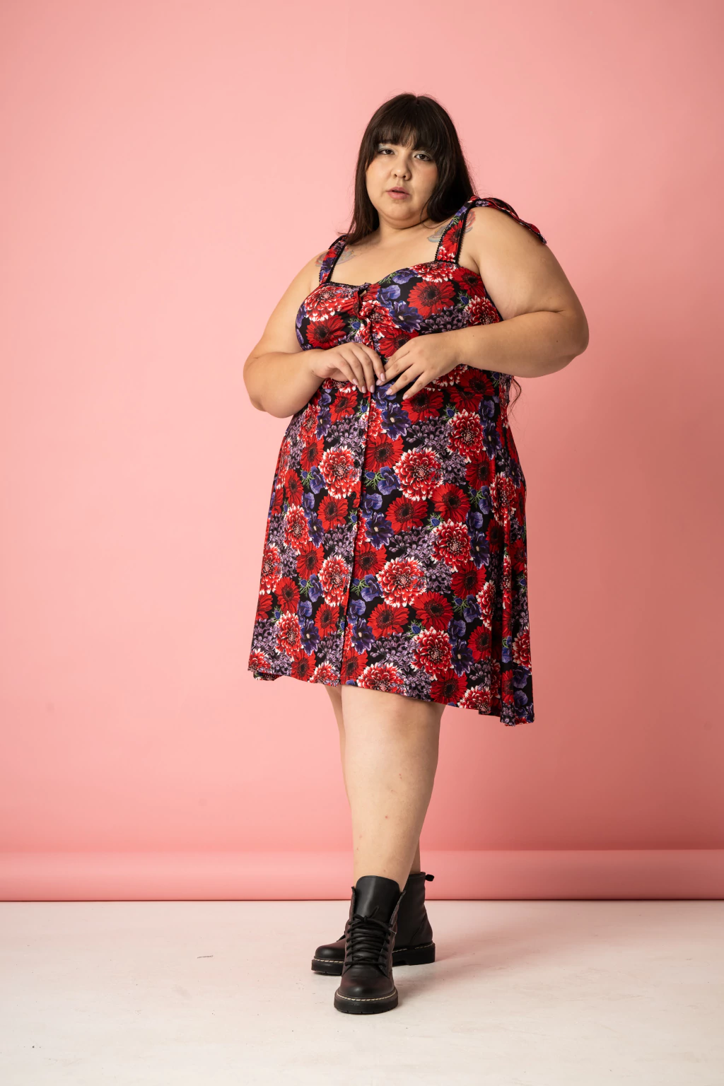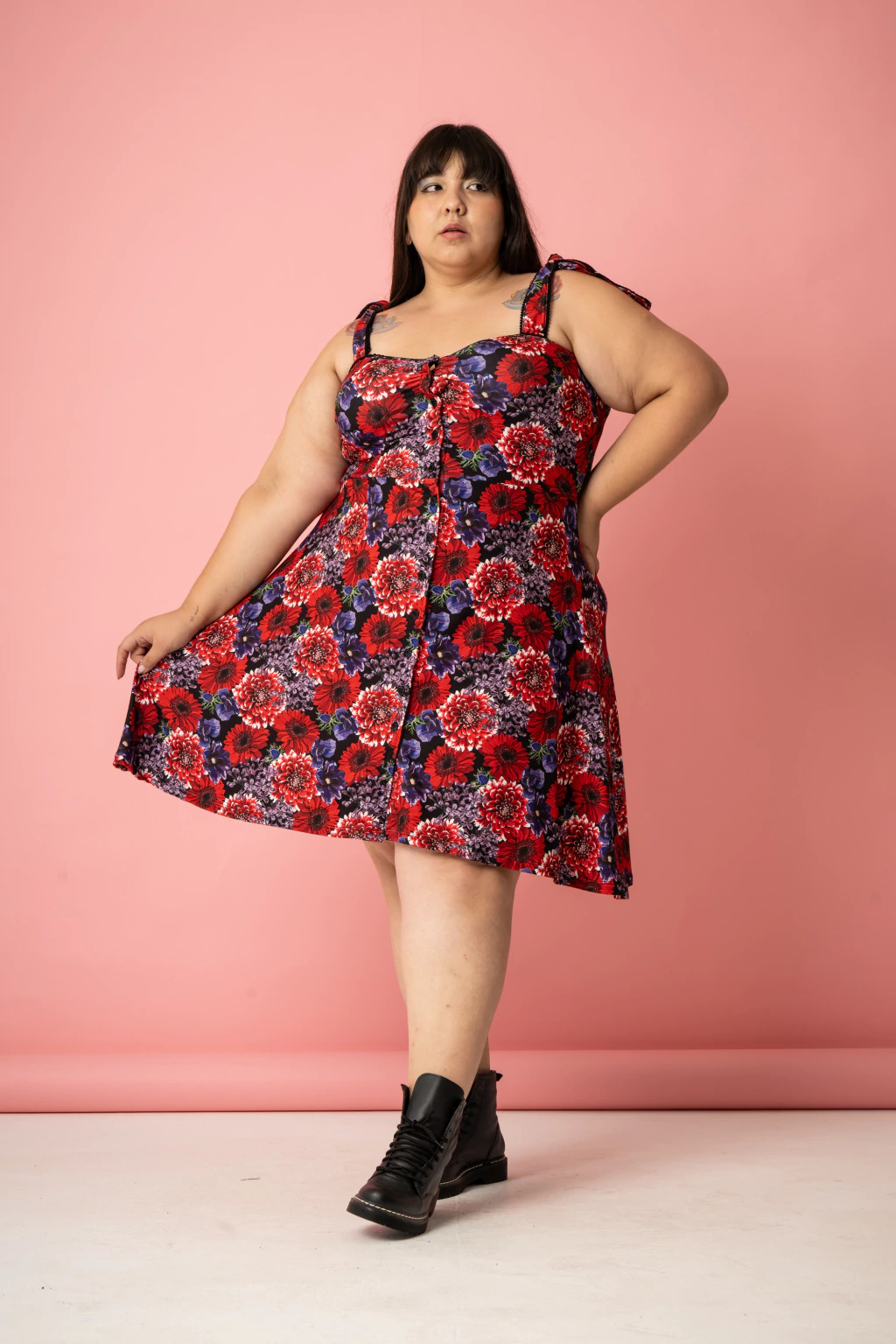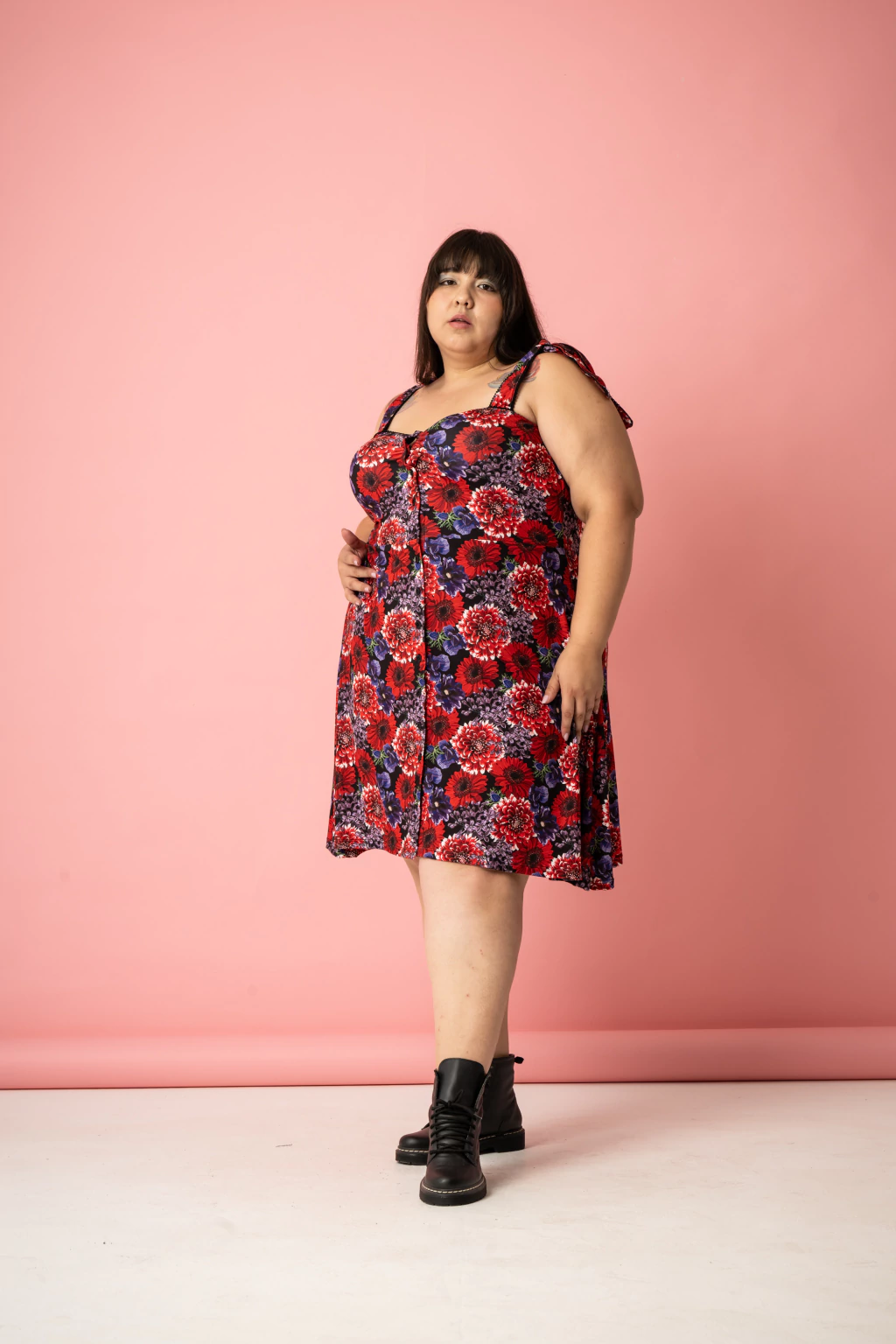 Vestido solero con corte en la cintura y breteles para atar y regular